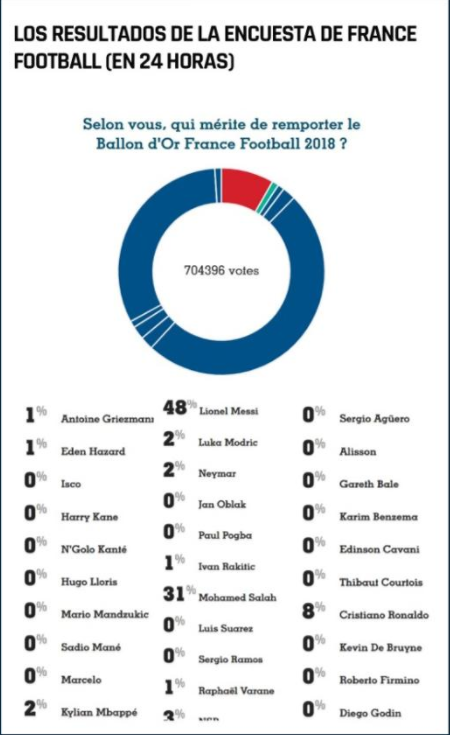 გამოკითხულთა 48%-ის აზრით საუკეთესო ფეხბურთელი ლეო მესია, ხოლო 31% თვლის, რომ საუკეთესო სალაჰია.