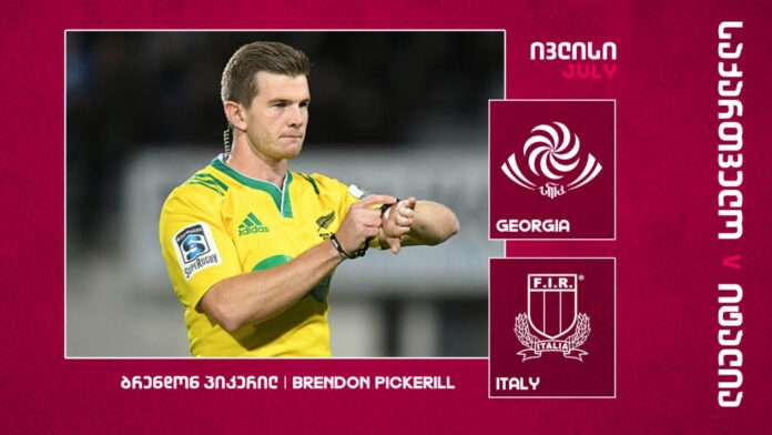 9 ივლისს საქართველოში, ბორჯღალოსნებისა და იტალიის ტესტ-მატჩს ახალ ზელანდიელი რეფერი ბრენდონ პიკერილი იმსაჯებს.