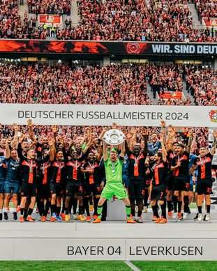 გერმანიის ბუნდესლიგის 2023/24 წლების სეზონის გამარჯვებულმა ლევერკუზენის „ბაიერმა“ ჩემპიონობა დაუმარცხებლად მოიპოვა – ჩაბი ალონსოს გაწვრთნილმა გუნდმა ალემანთა უპირველესი ლიგა 28 მოგებითა და 6 ფრით დაასრულა. „ფარმაცევტები“ ბუნდესლიგის ისტორიაში პირველები არიან, რომელთაც საჩემპიონო ვერცხლის სინი წაგების გარეშე ჩაიბარეს.