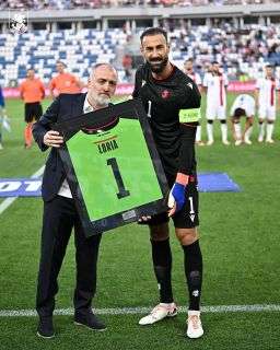 მატჩის დაწყებამდე ეროვნული გუნდის აწ უკვე ყოფილ მეკარეს გიორგი ლორიას საქართველოს ფეხბურთის ფედერაციის ვიცეპრეზიდენტმა ალექსანდრე იაშვილმა სპეციალური პრიზი – ჩარჩოში ჩასმული ერთნომრიანი მაისური გადასცა. 39 წლის გოლკიპერისთვის ფარერებთან დაპირისპირება 79-ე აღმოჩნდა. მას დებიუტი 2008 წლის 27 მაისს ტალინში ესტონეთთან (1:1) ამხანაგურ თამაშში ჰქონდა. მან ნაკრებში ჩატარებულ 78 მატჩში 85 ბურთი გაუშვა, ხოლო მეტოქეებს გოლი 30 შეხვედრაში არ გაატანინა. ის გუნდის კაპიტანი ორჯერ იყო – 2020 წლის 14 ოქტომბერს ჩრდილოეთ მაკედონიასთან ჩატარებულ შეხვედრაში და 2023 წლის 25 მარტს მონღოლეთთან ამხანაგურ თამაშში. მან საქართველოს ნაკრებში მეკარეებს შორის ყველაზე მეტჯერ ითამაშა.