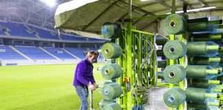 ბათუმის ახალ სტადიონზე ჰიბრიდული საფარის დაგება გრძელდება